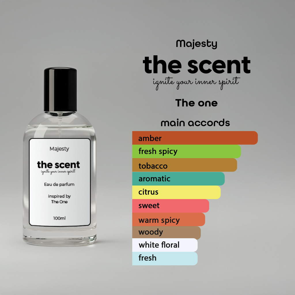 Majesty Inspired by Dolce & Gabbana The One – The Scent is a sophisticated masculine fragrance that embodies charisma and timeless elegance. It opens with fresh grapefruit, coriander, and basil, unfolds into a warm heart of cardamom, ginger, and orange blossom, then settles into a rich base of tobacco, amber, and cedarwood. Bold, long-lasting, and magnetic, Majesty is perfect for evening wear and special occasions, leaving a refined and unforgettable trail.